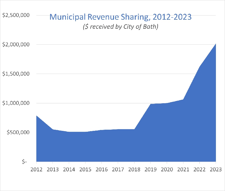 The recent increase in revenue sharing (and the reduction in state revenue sharing from 2013-2018) make a significant difference in the City's tax rate. We received $2,017,243 in municipal revenue sharing in 2023, which reduced our tax rate by about $1.20.