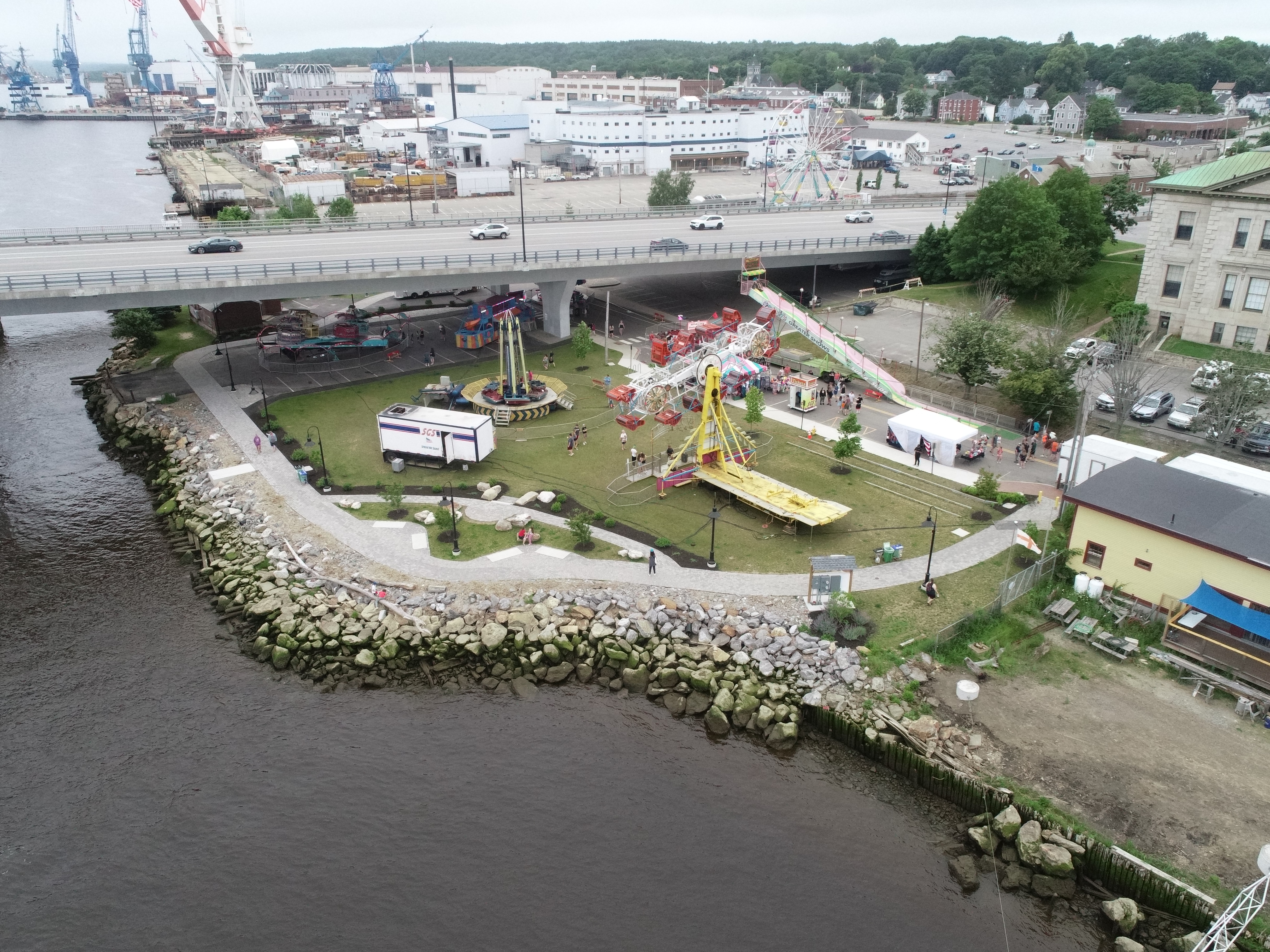 The City of Bath worked with The Guilford Transportation Industries, a state-owned property. The state agreed to use the space for a public park.