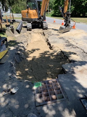 OCTOBER 17, 2022 - UPDATE - Installation of the new storm drain has been completed. The three existing catch basins near the Park St./High St. intersection will now convey stormwater to the storm drain rather than the sewer. This should improve the operation of the sewer in this area and reduce overflows during rain events. We are working with our paving contractor to patch the roads before the end of the paving season.