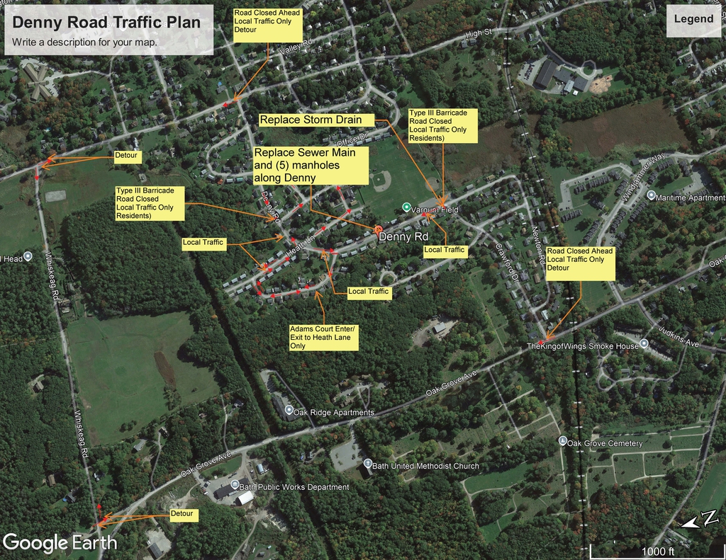 The City of Bath, in partnership with the Bath Water District, is undertaking a coordinated infrastructure improvement project along Denny Road. This project includes the replacement of the sewer main, manholes, and the Bath Water District’s water main. These upgrades are essential to maintaining reliable utility services and preparing the road for future paving.