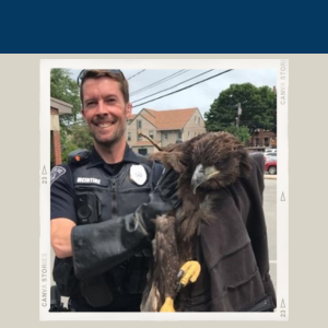 Bath Police Officer McIntire and Animal Control Officer McKnight responded to a report of a sick/injured bald eagle in north Bath. Officer McIntire was able to locate the eagle on Bayshore Rd. and saw that it was indeed ill and/or injured to some extent. The eagle was transferred to Avian Haven for care and hopeful rehabilitation.